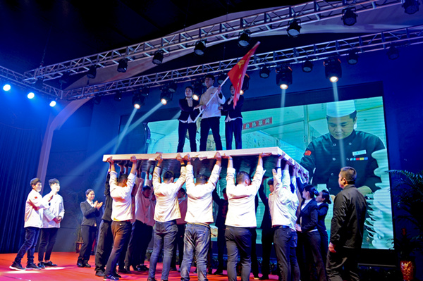 迪尼斯酒店開(kāi)元店表演的團(tuán)隊(duì)風(fēng)采《眾志成城·從頭再來(lái)》是公司員工紀(jì)律、業(yè)務(wù)、才藝、禮儀與團(tuán)隊(duì)精神的綜合展示,獲得二等獎(jiǎng),獎(jiǎng)勵(lì)2000元;