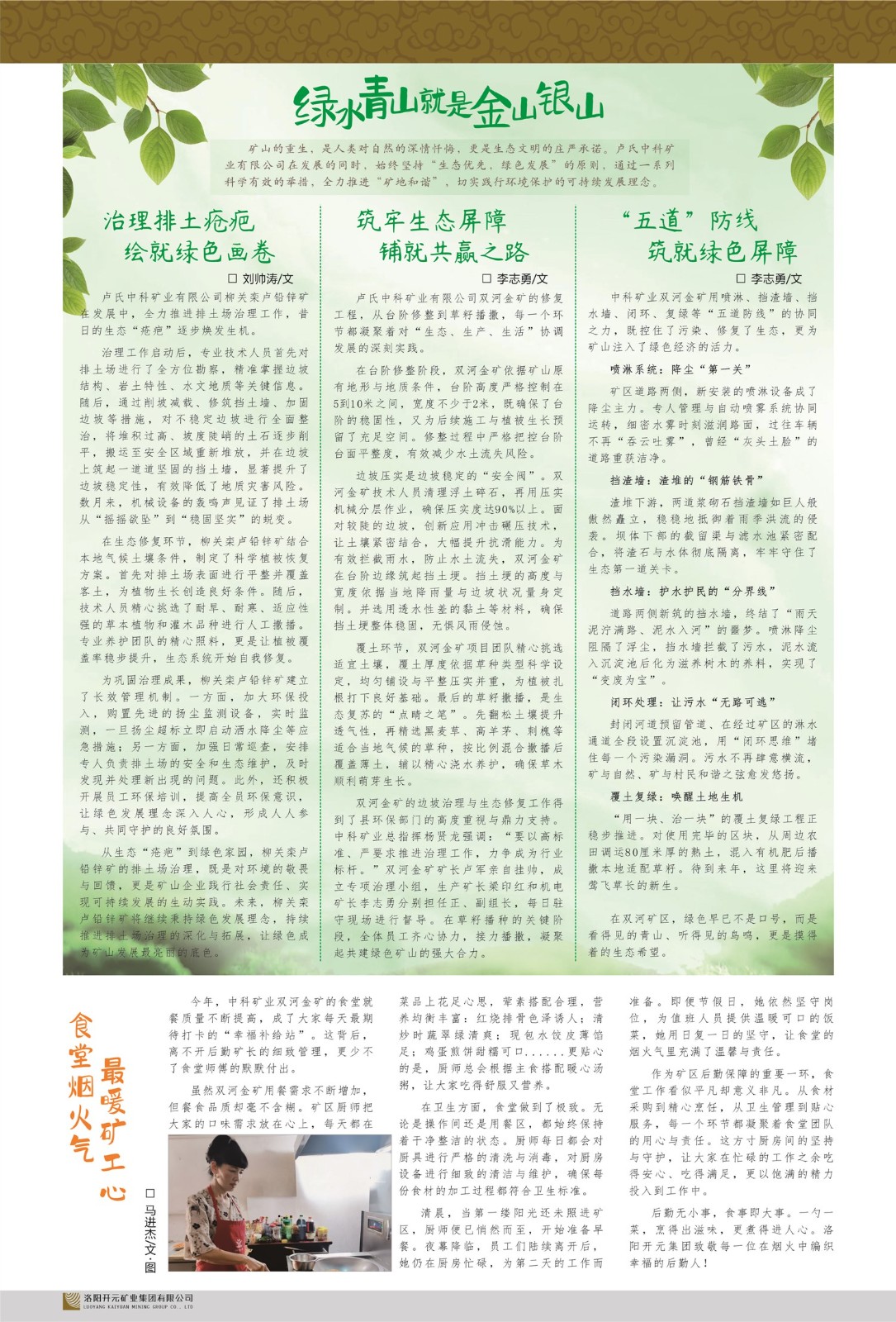 我們堅(jiān)持“絕不能以犧牲環(huán)境和人的健康為代價(jià)從事生產(chǎn)”的理念,重視環(huán)境保護(hù),堅(jiān)持發(fā)展循環(huán)經(jīng)濟(jì),打造綠色花園式礦山企業(yè)。